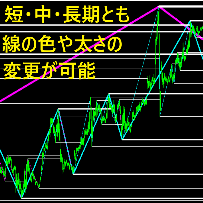 - MT4標準のZigZagを短期・中期・長期とマルチタイムフレーム(MTF)で表示可能