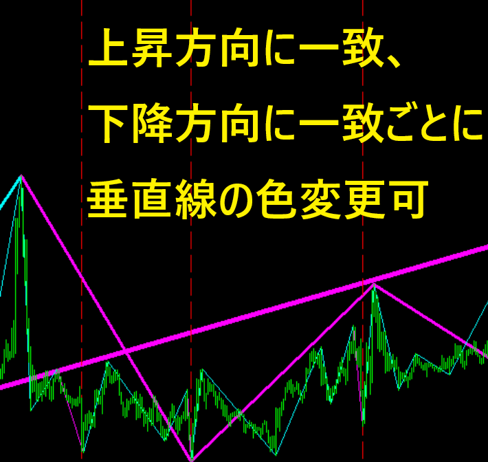 - 過去にトレンドが同じ方向に一致した箇所には、垂直線(縦線)を表示