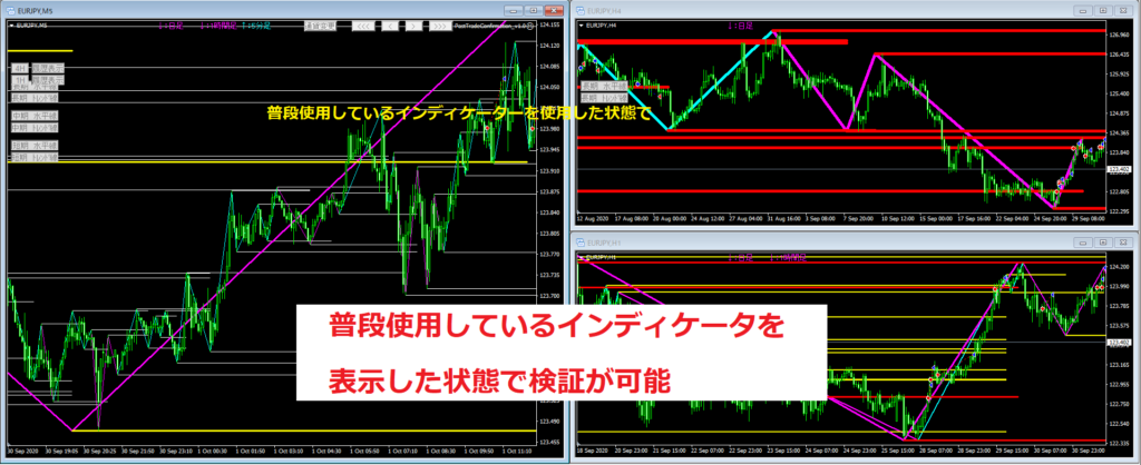 普段使用しいている他のインディケーターを表示したままでも検証可能