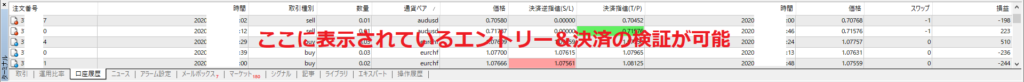・口座履歴にあって、チャート上に、表示できるもののみ検証可能対象です。