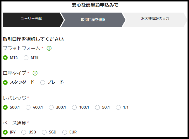 ・口座タイプ・・・「スタンダード」